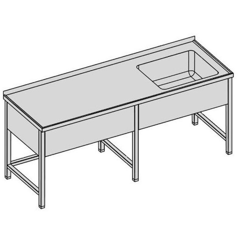 Umývací stôl s vaňou a krytom dlhý, hĺbka 700 - 800 mm, šírka 2000 - 2800 mm, výška V=850 mm (-10/+25 mm), zadný lem 40 mm, zadné nohy odsadené 25 mm, lisovaná vaňa - 600x500x300 mm, kryt, možné úpravy