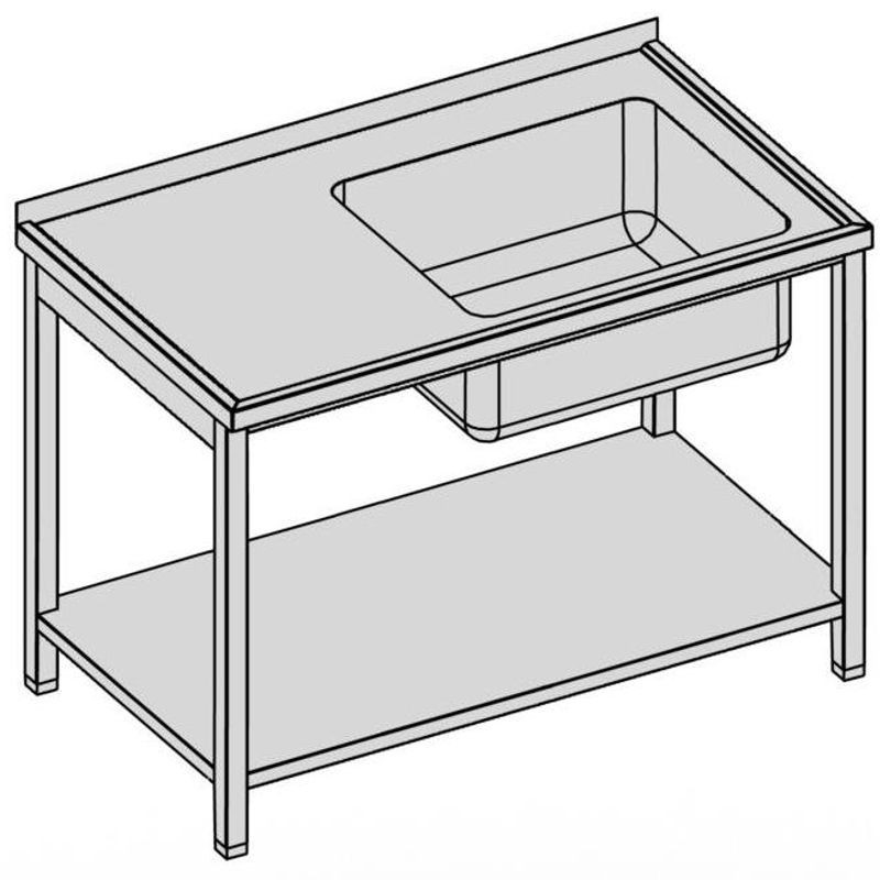 Umývací stôl s vaňou a policou, hĺbka 700 -800 mm, šírka 1000 - 1900 mm, výška V=850 mm (-10/+25 mm), zadný lem 40 mm, zadné nohy odsadené 25 mm, lisovaná vaňa - 600x600x300 mm, polica vo výške 150 mm, nosnosť police 50 kg/1 polica, možné úpravy