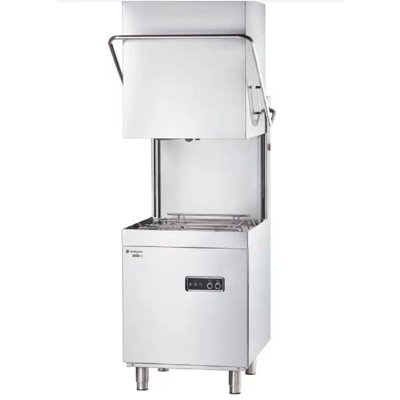 Priebežná umývačka Stalgast, rozmery: 728 x 816 x 1505 mm, kôš 500 x 500 mm, bez odpadového čerpadla, prípojka 400 V, príkon 10,8 kW ▪ celonerezové prevedenie ▪ s nerezovými umývacími ramenami ▪ s oplachovými ramenami z termoplastu ▪ s lisovanou vaňou ▪ rozmery koša: 500x500 mm ▪ max. výška vsuvu 415 mm ▪ umývací cyklus: 120/180 sekúnd ▪ elektromechanické ovládanie ▪ vrátane dávkovačov na umývací aj oplachový prostriedok ▪ spotreba vody za cyklus cca 2,5 l ▪ vrátane univerzálneho koša, 2x koša na taniere a koša na príbor ▪ dostupná aj verzia s digitálnym ovládaním a 3 umývacími cyklami