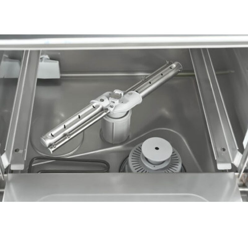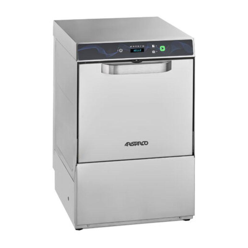 Umývačka pohárov Aristarco FUSION 40 - digitál + umývacie ramená hore/dole - rozmery koša: 400 x 400 mm, max. výška pohárov/tanierov 290, umývacie cykly: 90 / 120 / 180 sek. / 9 minút, spotreba vody za cyklus cca 2 l, čiastočne dvojplášťové telo a dvojplášťové dvierka, vrátane pumpy na oplach, digitálne ovládanie, LED displej zobrazujúci teplotu bojlera a vane, s funkciou "GREEN" pre úsporu energie, so systémom auto-diagnostiky, s funkciou automatického čistenia na konci prac. dňa, v cene 2 koše, kôš na príbor a stojan na taniere, umývacie a oplachové ramená z nerezu, umývacie ramená hore aj dole, voliteľné: odpadová pumpa, dávkovač umývacieho prostriedku, výkon: 3,03kW/ 230V, rozmery: 455 x 550 x 700 mm