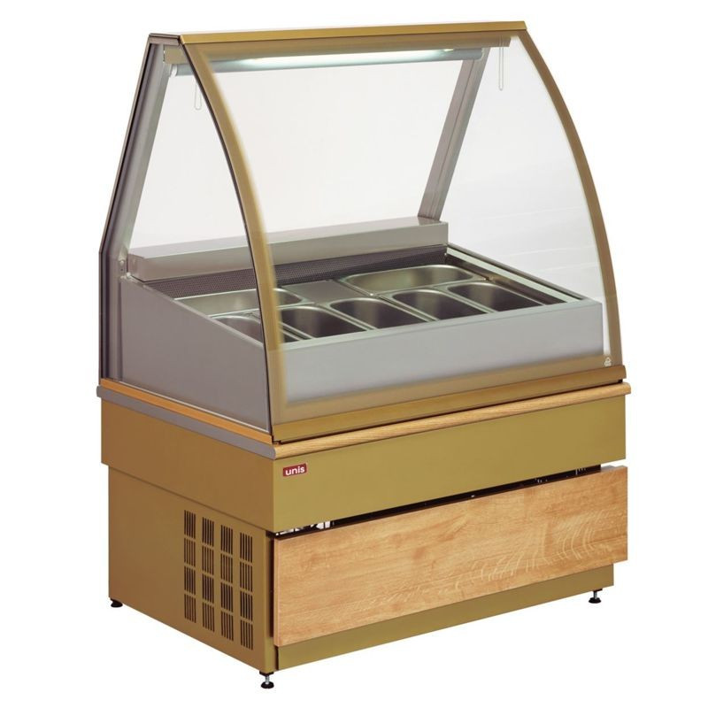 Luxusná mraziaca vitrína GEORGIA III Ice Cream, zlatá, Počet vaničiek 7 ks, rozmery vaničiek: 360 x 165 x 120 mm, objem vaničiek 5 l. Teplotný rozsah: -16 / -20 oC.