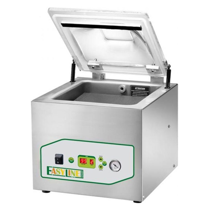 Vakuovací stroj komorový Fimar, rozmery: 560 x 510 x 460 mm, rozmery komory: 410 x 450 x 220 mm, dĺžka zvaru: 400 mm. Prípojka/Príkon (V/kW) 230/0,75. Výkon (m3/h) 20 ▪ vhodné aj pre väčšie prevádzky ▪ použiteľný aj na tekuté potraviny ▪ kompletne z nerezu ▪ digitálne ovládanie ▪ 6 prednastaviteľných programov ▪ dĺžka zvaru: 250, 300, 400 alebo 500 mm ▪ výkon pumpy od 4 m3/h do 25 m3/h ▪ olejová pumpa ▪ vymeniteľná zvarová lišta ▪ predpríprava na použitie konzervačných plynov ▪ dostupné aj iné modely ▪ maximálne vákuum: 98%