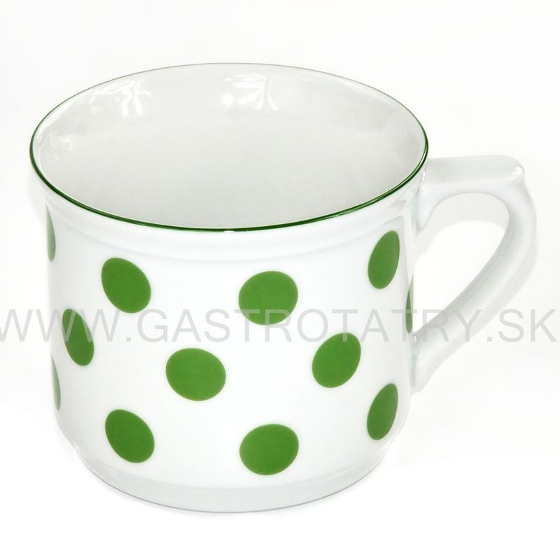 Karlovarský porcelán - Hrnček varak - zelené bodky. Priemer: 113 mm, výška: 95 mm, objem: 630 ml. Vysoká kvalita a osobitý dizajn vychádzajúci z 220-ročnej tradície zaručujú vysoký užívateľský štandard pre všetky druhy zákazníkov.