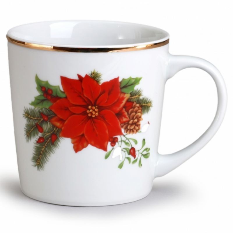 Hrnček TOMÁŠ 210 vianočný kvet zlatá linka, vianočný dekor, nie je vhodný do mikrovlnnej rúry a umývačky riadu.