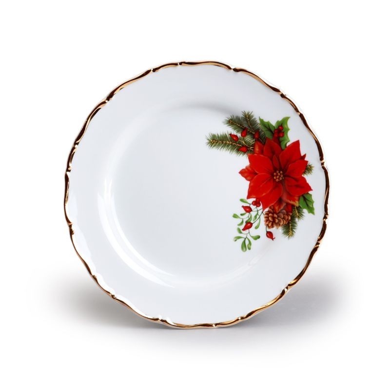 Ophelia vianočný kvet zlatá linka tanier dezertný, priemer 19 cm, tento výrobok nie je vhodný do umývačky riadu a mikrovlnnej rúry.