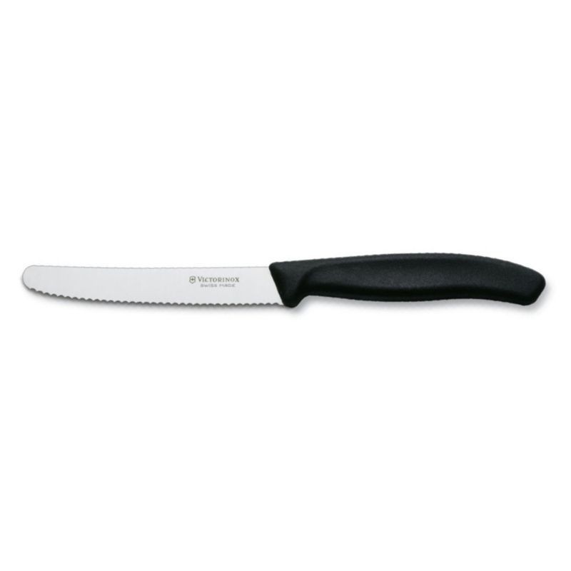 Univerzálny kvalitný švajčiarsky nôž VICTORINOX zúbkovaný dĺžka 11 cm, možno umývať v umývačke, so štandardnou plastovou rúčkou