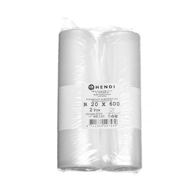 Kotúč vákuových vreciek na uskladnenie potravín, rozmery: dĺžka 6000 x šírka 200 mm. Súprava 2 kotúčov. Určené len na skladovanie potravín, nie na varenie sous vide. Vhodné pre oba typy vákuových baliacich strojov: pás a komora.