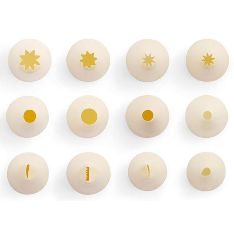 Koncovky na vrecká, ø 6-8-10-12. Na použitie v profesionálnej gastronómii. Ideálne pre pekárne a cukrárne. Precízne zdobenie tort a zákuskov. Vyrobené z polypropylénu alebo nehrdzavejúcej ocele. Dostupné modely rôznych tvarov. Súprava 12 rôznych koncoviek v škatuľke