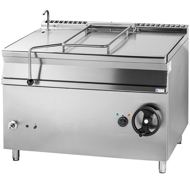 Plynová výklopná panvica, objem 120 l ▪ s nerezovou panvicou ▪ dostupné aj s oceľovým dnom ▪ objem 120 litrov ▪ manuálne vyklápanie ▪ s napúšťacou batériou ▪ kompletne z nerezu ▪ s elektrickým zapaľovaním ▪ možné objednať aj s tryskami na propán-bután. Výkon plyn 27 kW, prípojka plyn G20, rozmery 1200 x 900 x 900 mm