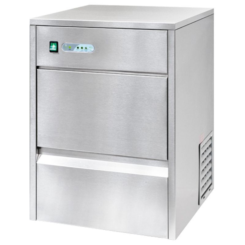 Vyrobnik ladu STALGAST 26/6 kg vzduch, výkon 20-26 kg/24h ▪ telo z nerezu ▪ ľadové kalíšky s pribl. 15g ( Ø28x40 mm) ▪ chladenie vzduchom (bez možnosti zabudovania) ▪ výrobník musí stáť v dobre vetranej miestnosti, ďaleko od tepelných zdrojov. Rozmery 420 x 528 x 655 mm, zásobník 6 kg, produkcia 26 kg/24 h, prípojka 230 V, príkon 0,22 kW