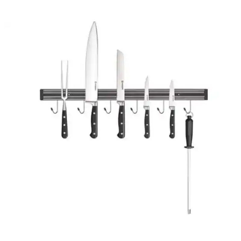 Magnetický držiak nožov s vešiakmi, dĺžka 625 mm, 6 vešiakov