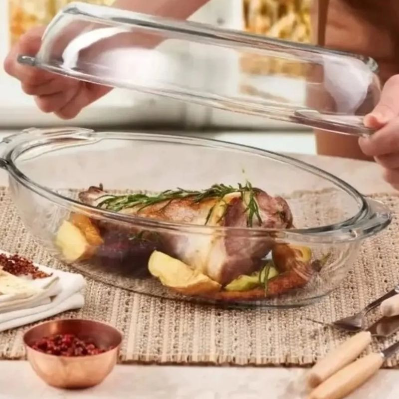 Pekáč Borcam oválny, rozmery: dĺžka 34 x šírka 19,5 cm, výška misa 7 cm, veko 5,5 cm, objem 2,25 l + veko 1,8 l. Vhodné do umývačky riadu.