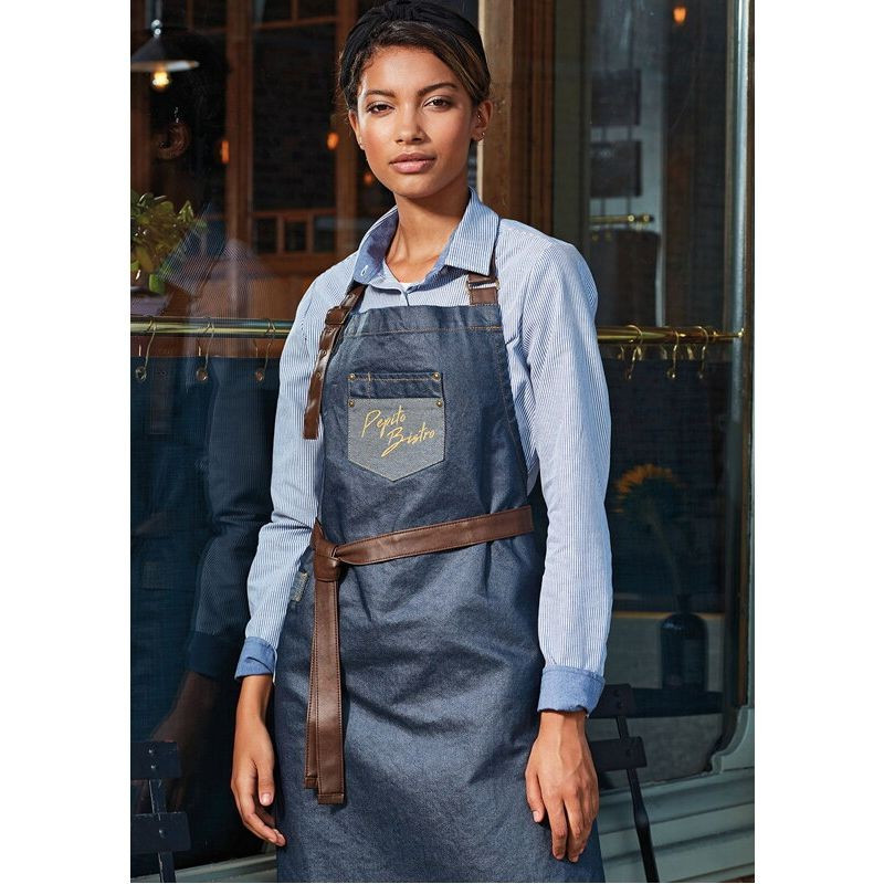 Zástera denimová PR136. Zástera z denimového materiálu pre každého, kto chce dosiahnuť elegantný a zároveň rustikálny look. Má povoskovaný vzhľad a kontrastné dekoračné prvky. Pásy sú vyrobené z falošnej kože a dodávajú nefalšovaný ráz. Je dostupná v 4 farbách. Zásteru je možné obrandovať vašim logom. (výšivka na obrázku je ilustračná)