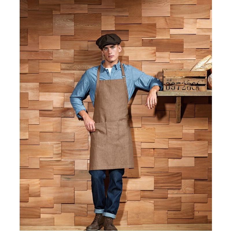 Zástera PR113. Táto štýlová zástera dodá šmrnc každému bistru či reštaurácií. Je vyrobená z denimového materiálu s certifikátom Fairtrade. Má dve veľké vrecká s kontrastným šitím a nastaviteľnú dĺžku pomocou karabínky.