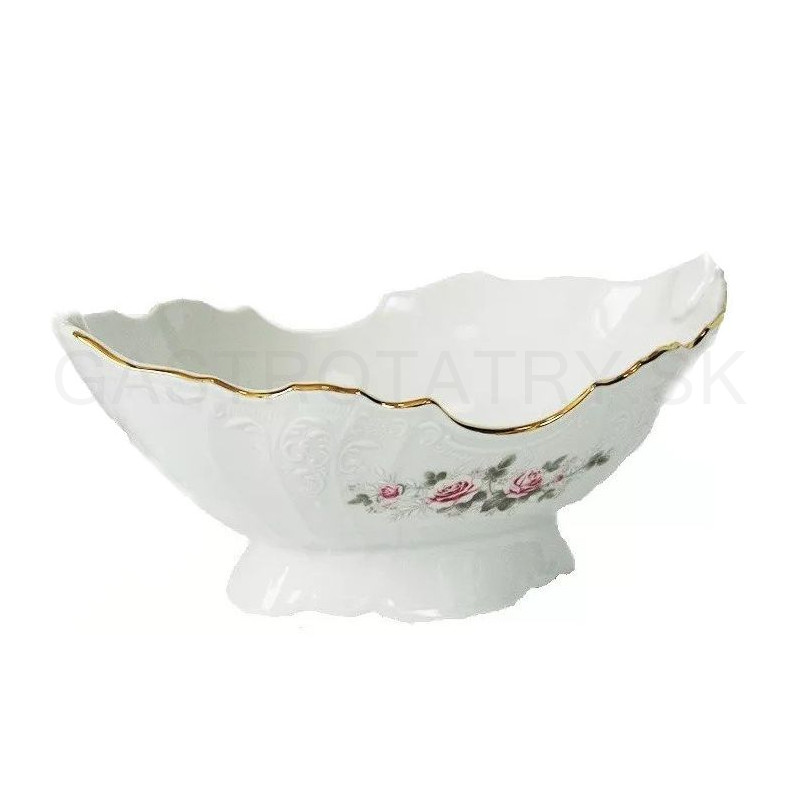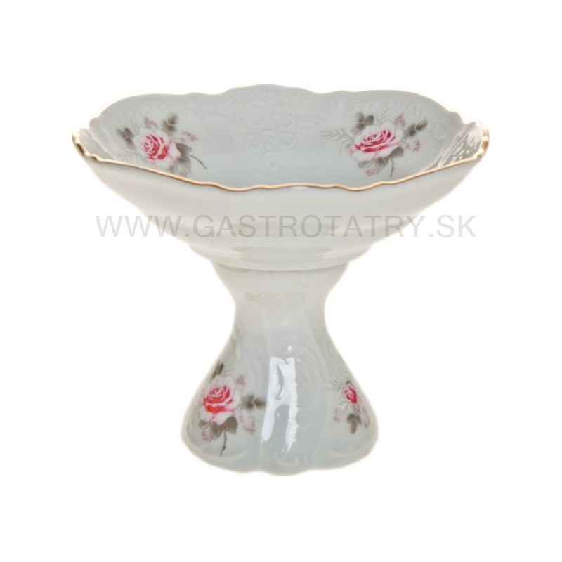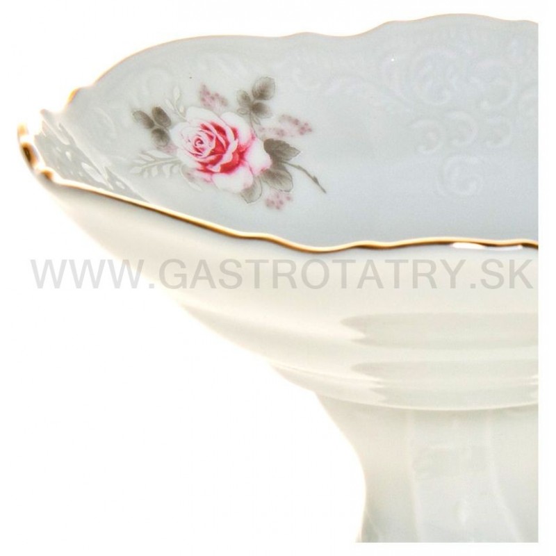 Karlovarský porcelán - BERNADOTTE misa na ovocie na nohe bez uší šedo-ružový kvet zlatá linka.