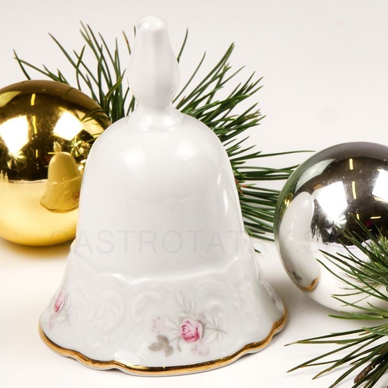 Karlovarský porcelán - Zvonček s rolničkou šedo-ruž.kvet zl.linka Bernadotte.