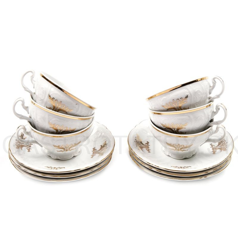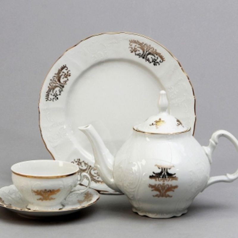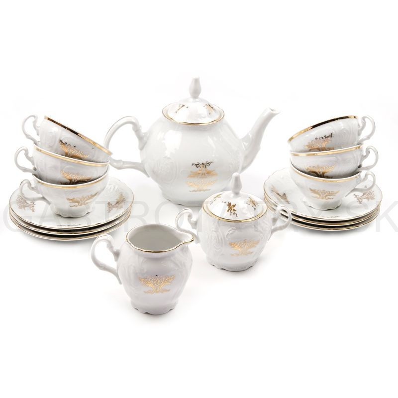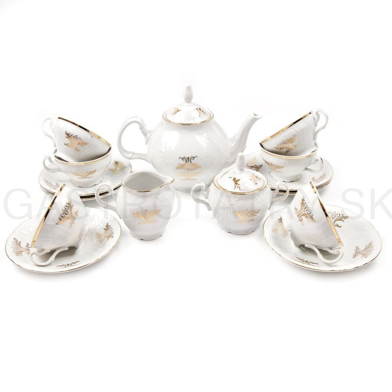 BERNADOTTE Čajová súprava biela so zlatým ornamentom 17 D,