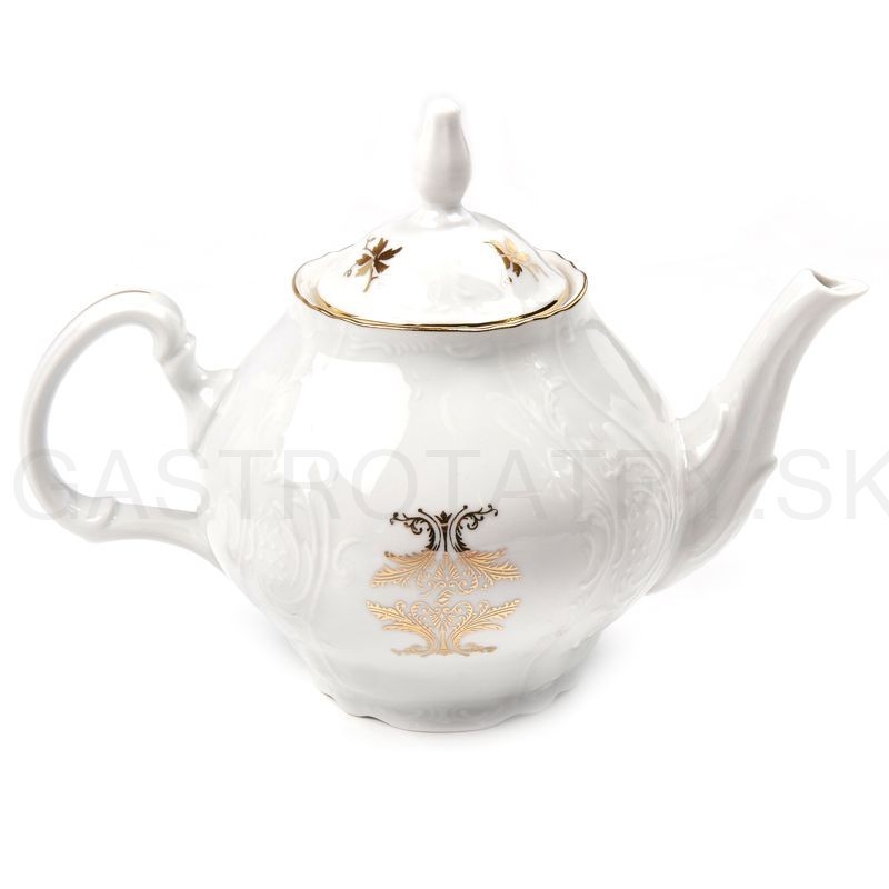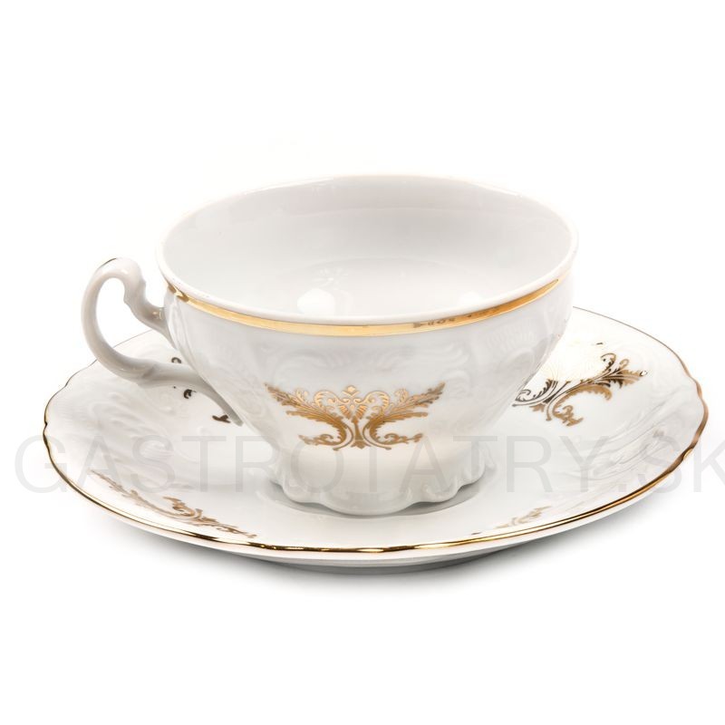 BERNADOTTE Čajová súprava biela so zlatým ornamentom 17 D. Nie je vhodná do mikrovlnej rúry ani do umývačky riadu.